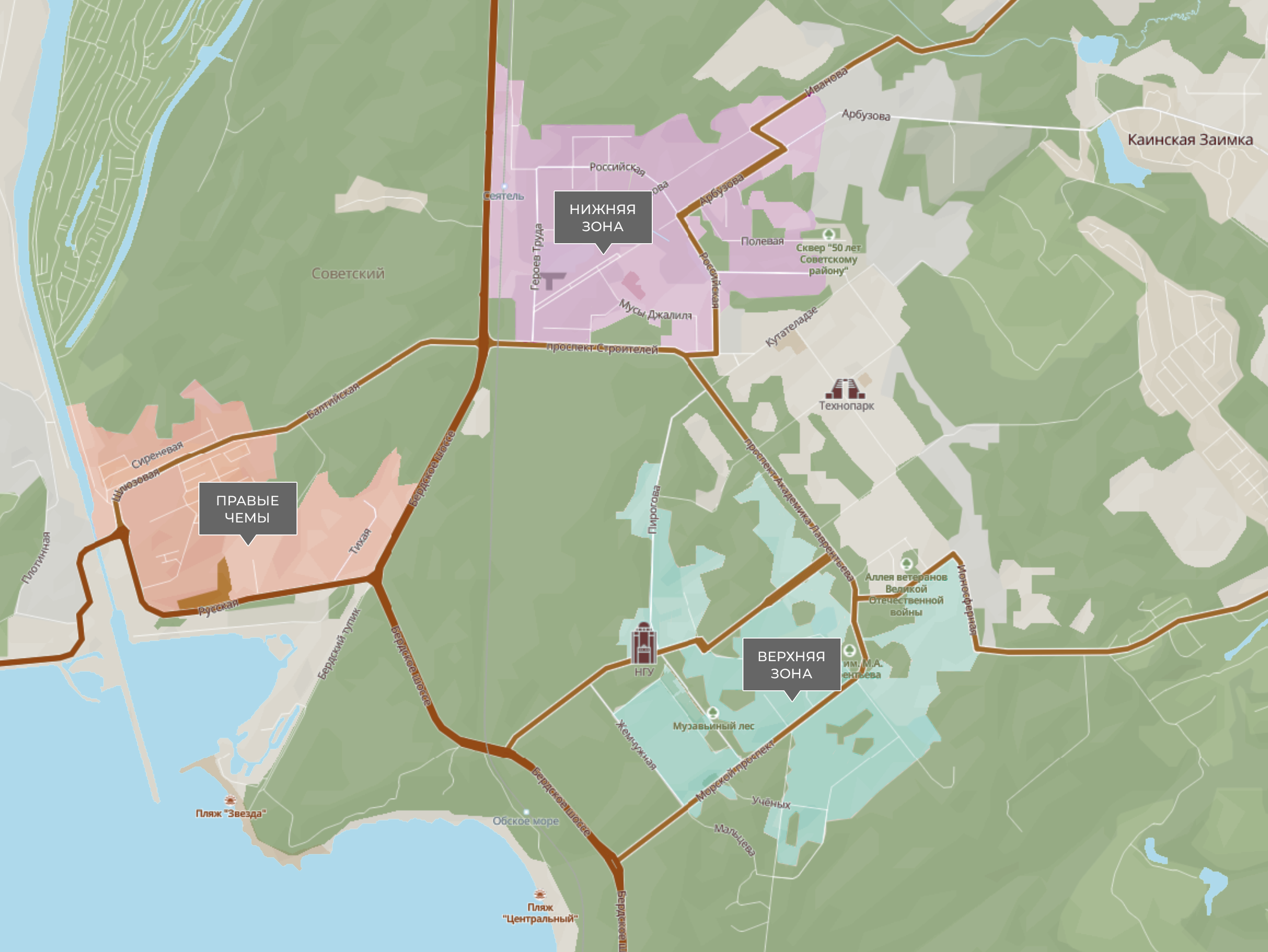 Исторически Академгородком считаются только две части Советского района — Верхняя зона и микрорайон «Щ». Эти и другие названия вы будете слышать чаще всего в ответ на вопрос, где живет кто-то из ваших знакомых. Теперь подробнее про каждую из его частей: