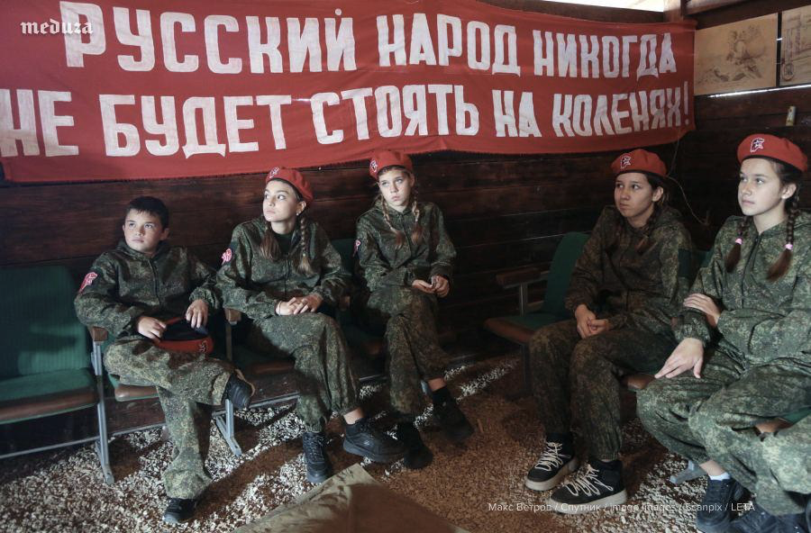 The militarisation of “patriotic” education was also evident in the creation of Young Army (Yunarmiya) — a movement established by the Russian Defense Ministry in 2015. It brought together all previously existing military-patriotic movements and became a foundation for “pre-conscription training”. Any child aged eight or older can join — as of December 2023, the number of participants has already exceeded 1.5 million. The values being instilled in Yunarmiya members are well illustrated by the movement's anthem: