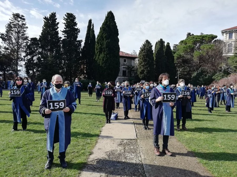 5 января в университетском кампусе прошла церемония назначения ректора. Присутствовавшие на ней преподаватели Босфорского университета в знак протеста отвернулись от ректората. Академики и сейчас каждый день встают спиной к зданию ректора в знак несогласия и продолжения борьбы.