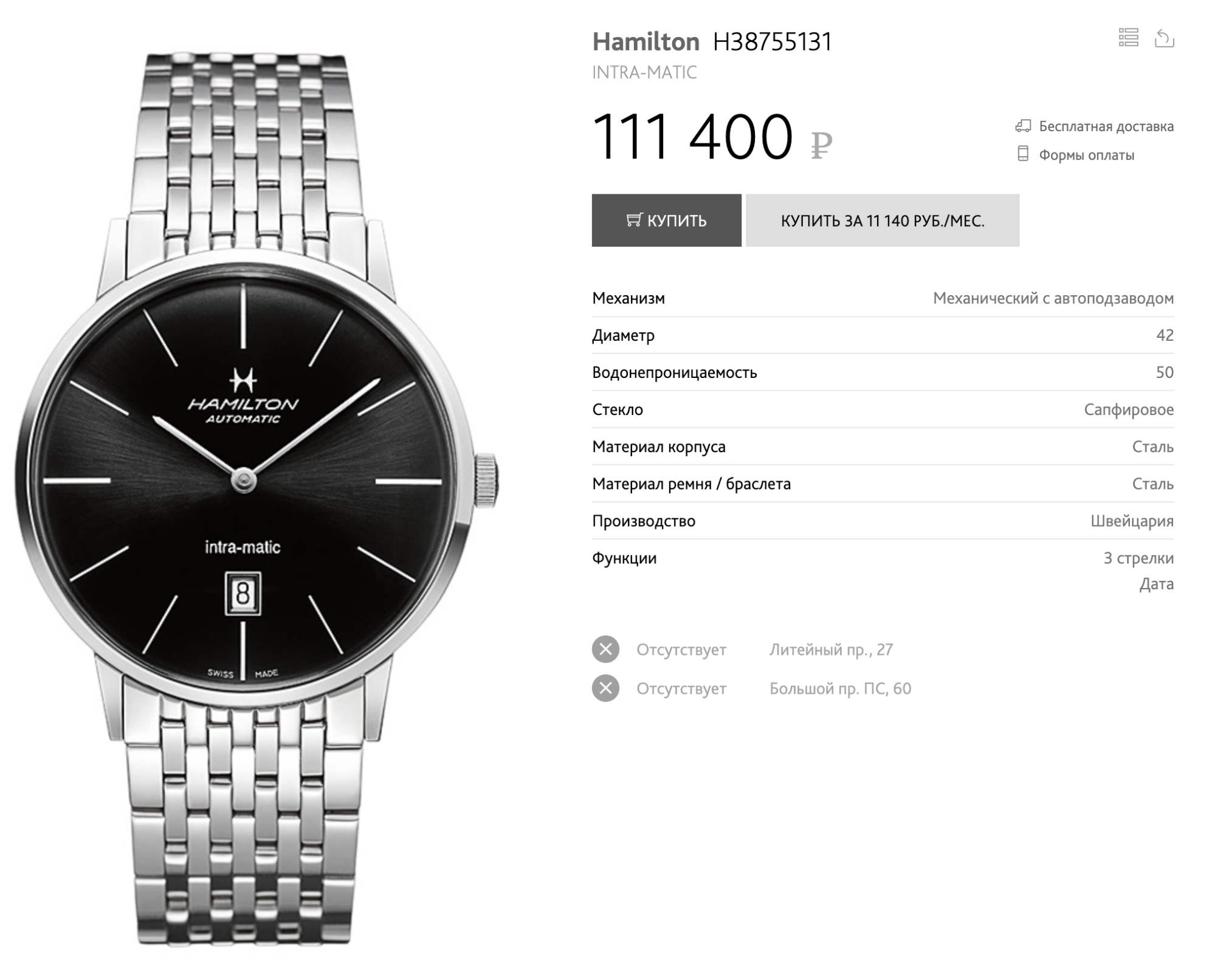 Хотя еще два года назад он носил швейцарские Hamilton за 111 400 ₽.
